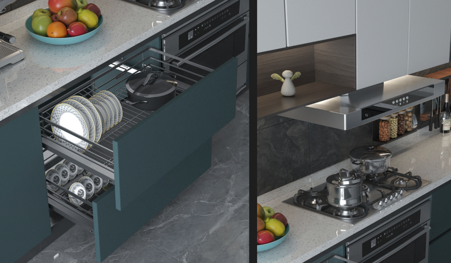 Featuring 13mm slim metal panel with synchronized soft-close technology.