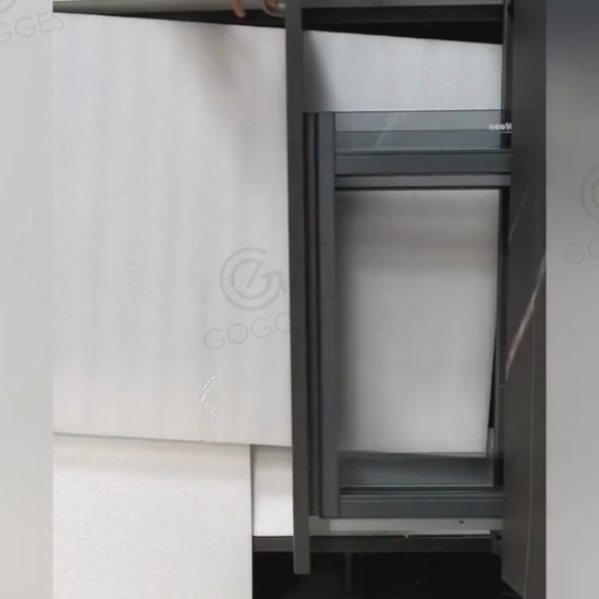 Design | 2 layer pull out basket with tempered glass railing for modern finish
