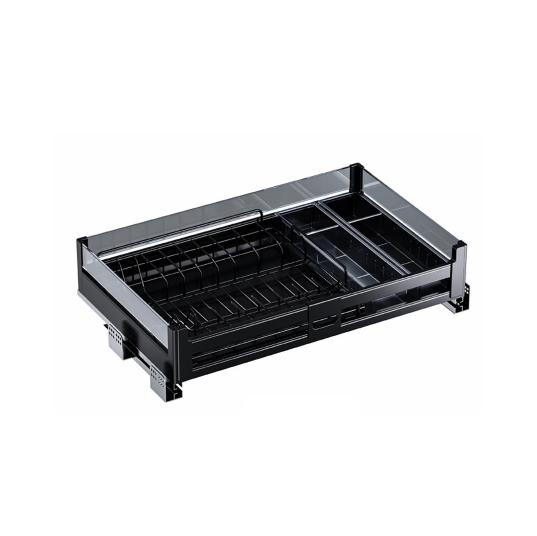 Keep your dishes organized with style. Made from durable powder-coated aluminium, this four-sided basket features an undermount soft closing slide for smooth, silent operation—perfect for any modern kitchen.
