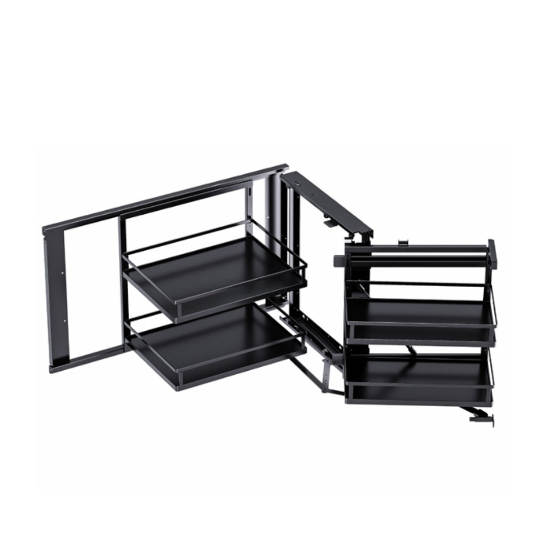 Transform hard-to-reach corner cabinets into practical storage space. The Magic Corner Basket glides smoothly outward, bringing your items within easy reach. Made from durable powder-coated iron, it features a soft closing mechanism for quiet, effortless operation—perfect for maximizing every inch of your kitchen.