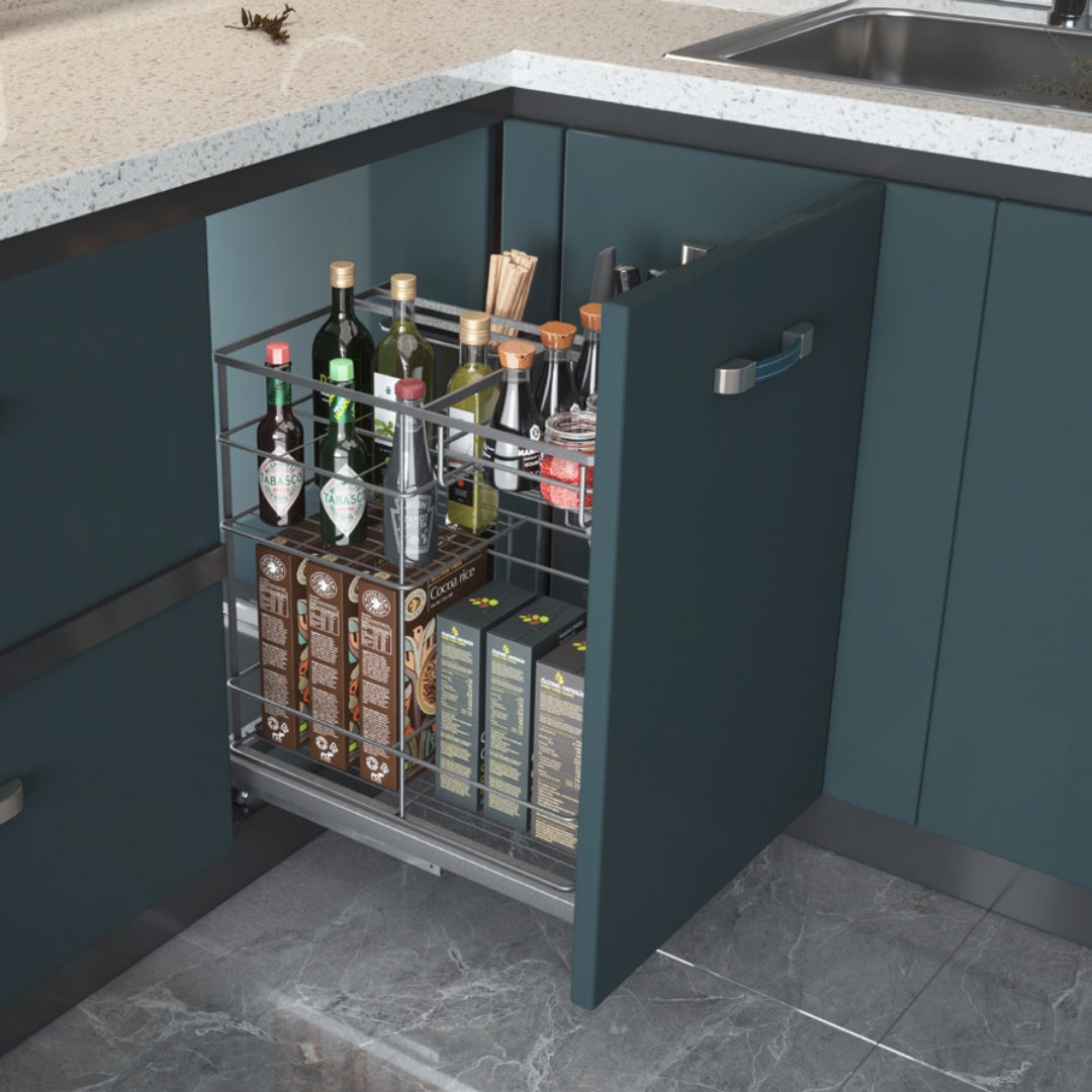 Store and organize your kitchen essentials effortlessly. Made from durable powder-coated iron, this multifunction basket offers versatile storage for a variety of items. The undermount soft closing slide provides smooth, silent access—combining convenience with a sleek, modern touch.