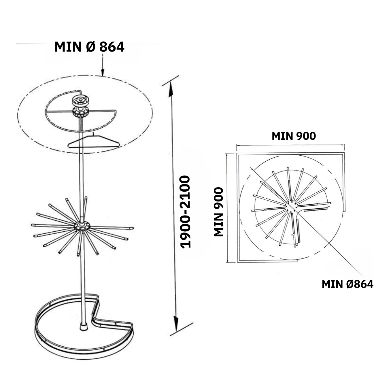 Design | 360° 2-layer rotary clothes-hanging rack, with three-quarter basket on the floor level