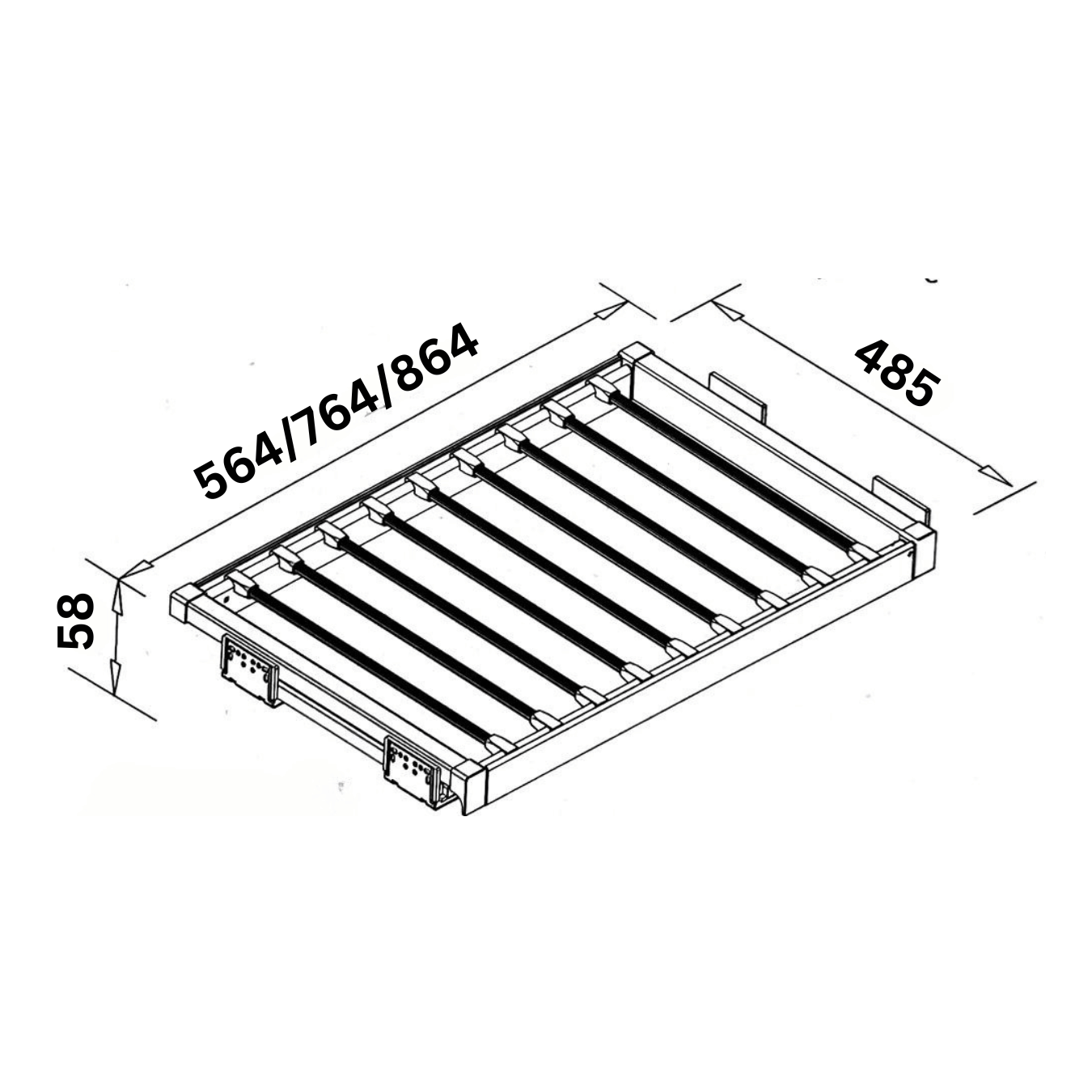Comes with aluminium frame and aluminium bars, convenient soft close slides with dampened return and is adjustable width up to 60mm.